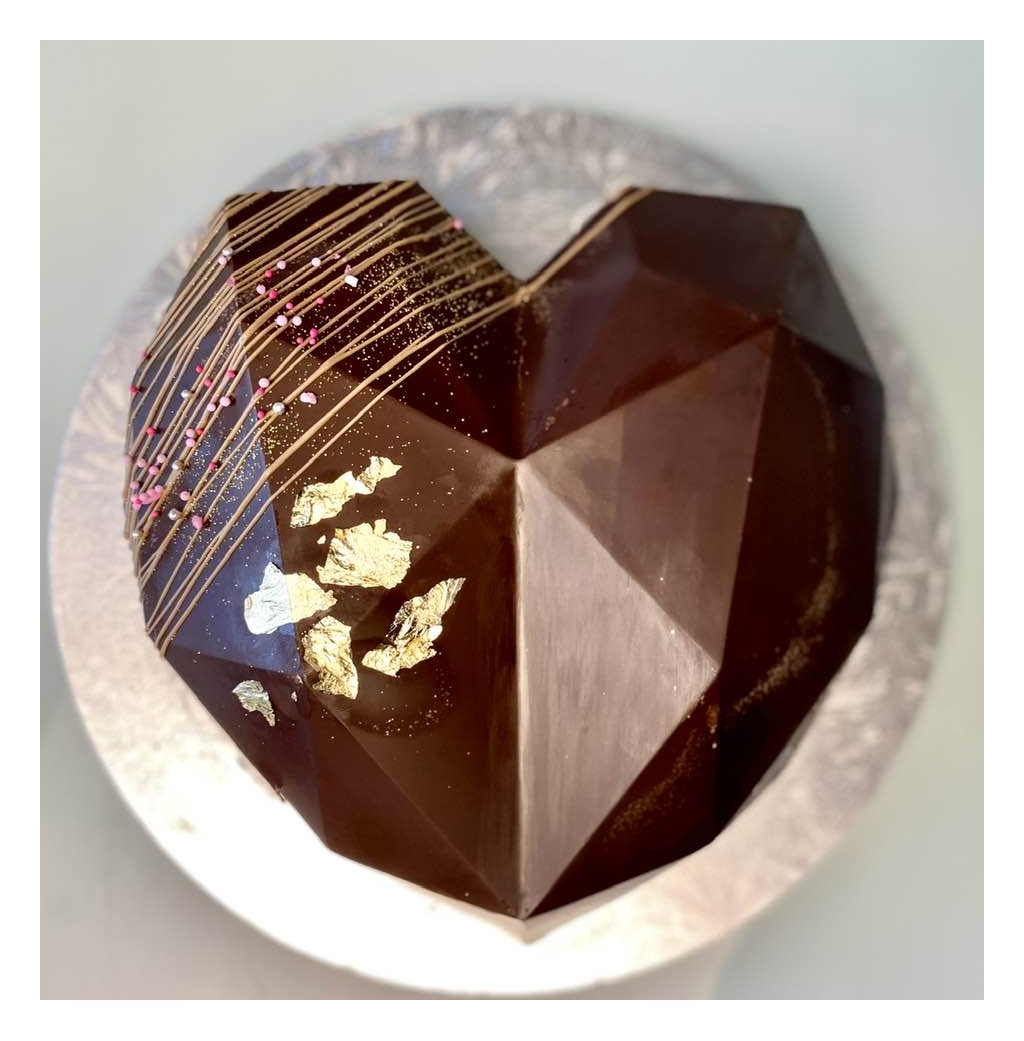 Decadent cake enrobed in couverture dark chocolate. Great addition to any celebration.